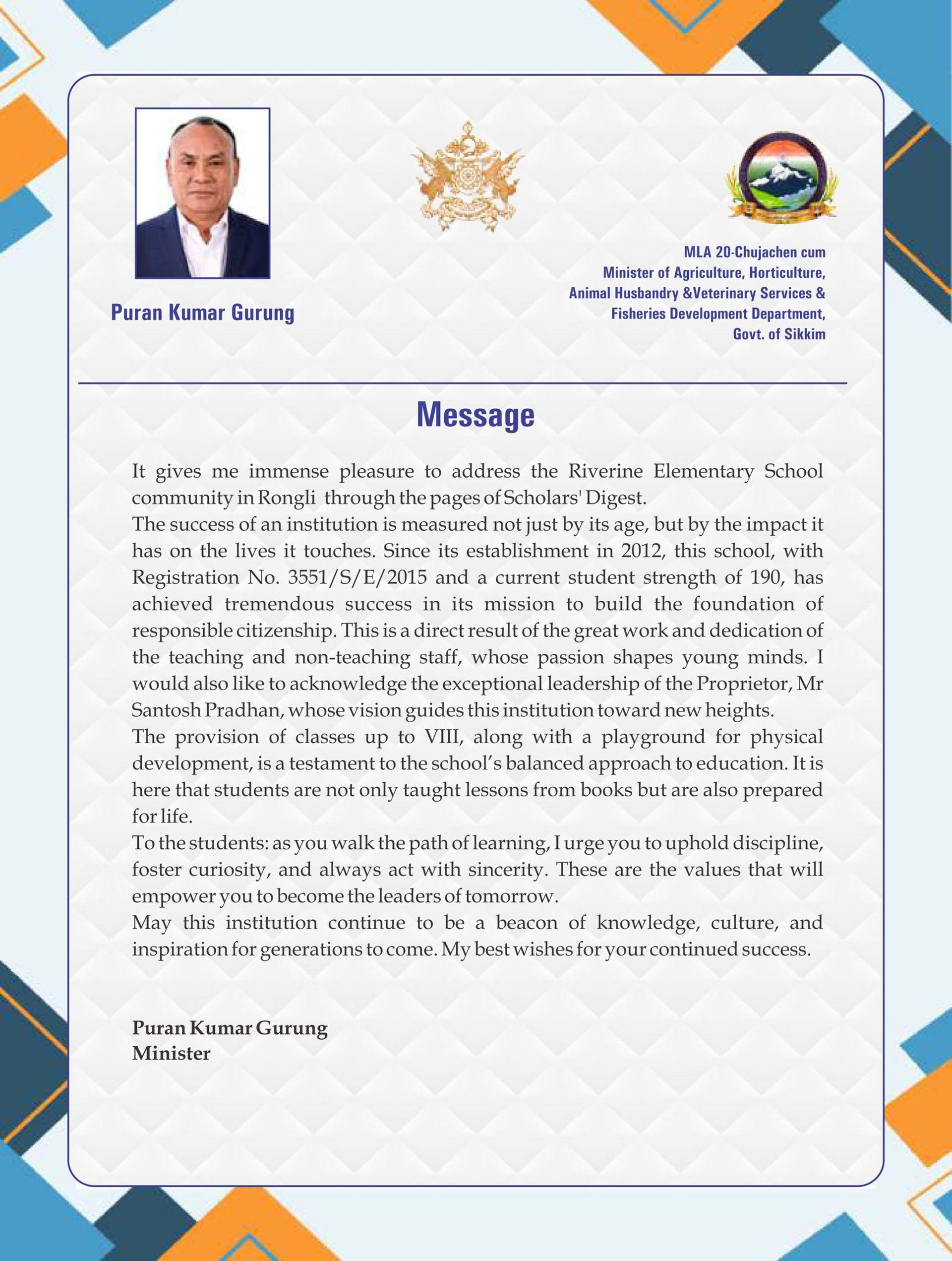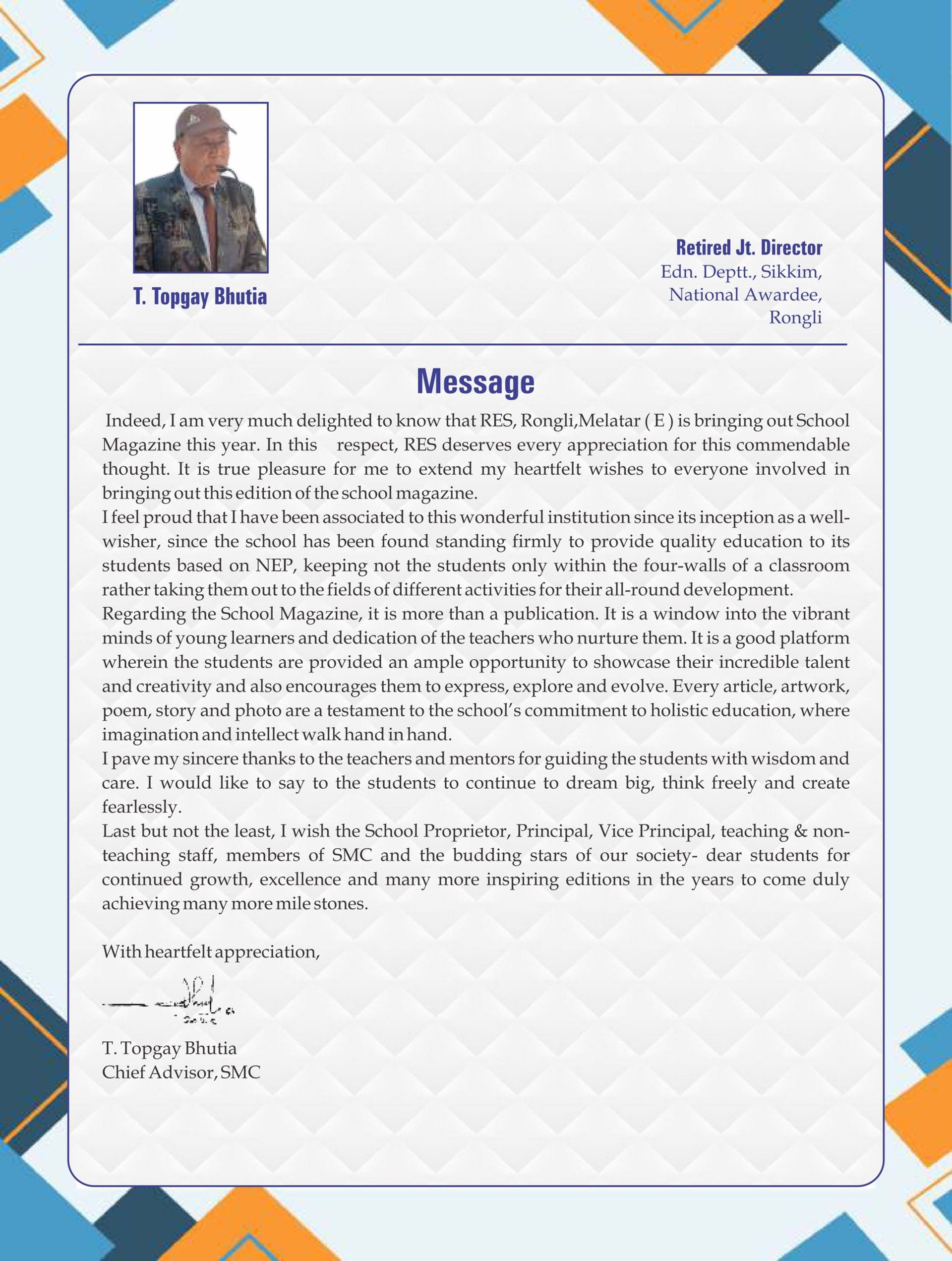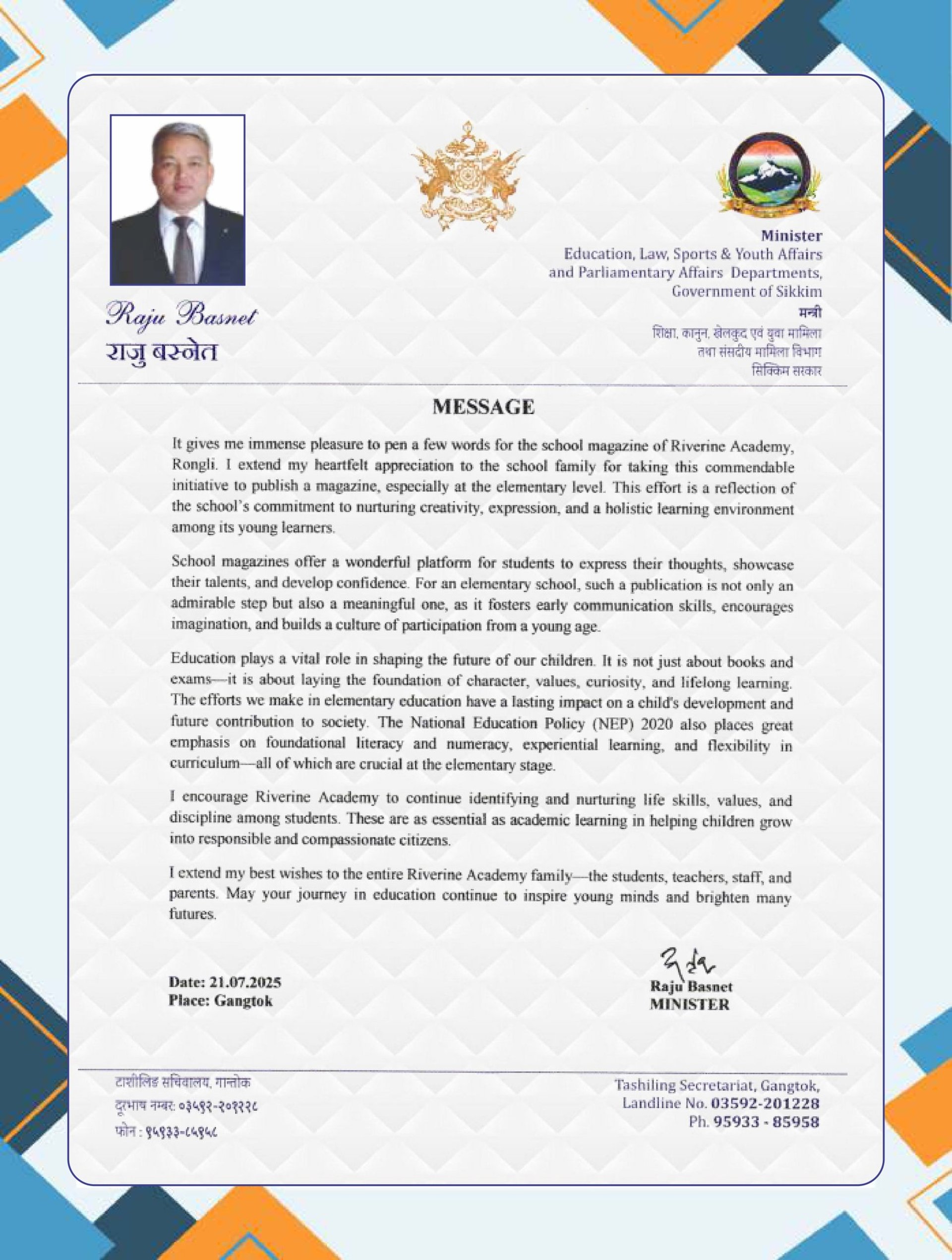 Established in 2012, Shiv Lata Memorial School is a nurturing and child-friendly institution located in Melatar, Rongli, Pakyong District, Sikkim. We provide quality education for pre-primary, primary, and junior high students with a strong focus on foundational learning, discipline, moral values, and overall personality development. Our peaceful campus and caring teachers create a safe and inspiring environment where every child can learn with confidence and grow with character.