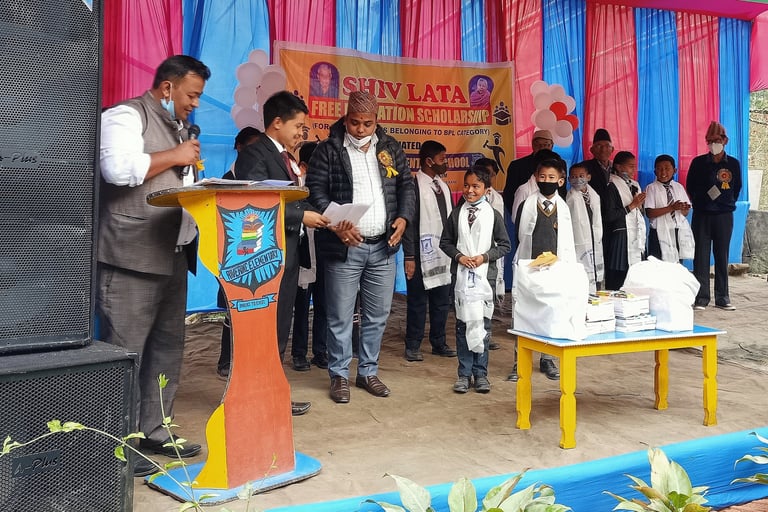 The Shiv Lata free education scholarship has continued to thrive since its inception on february 26,2022 the second edition honoured Master Jeedan Mishra and Miss Narkiss Begum. In 2023 the third shiv Lata free education scholarship was awarded to MasterAwakash Mishra and Miss Astina thami.